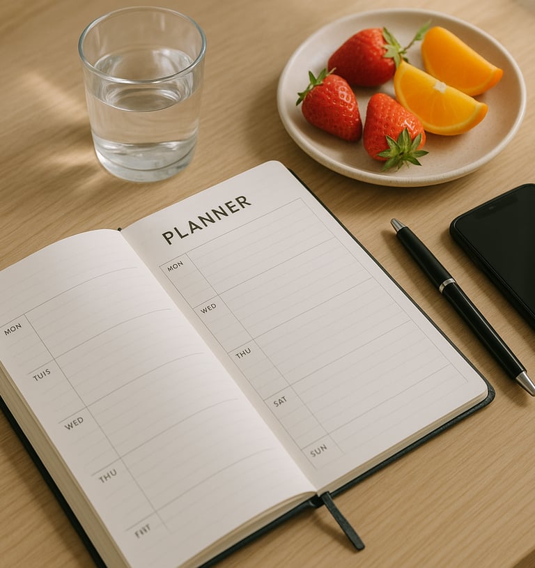 “O planner me ajudou a criar rotina. Eu era do tipo que pulava refeições e depois comia qualquer coisa. Hoje me alimento com mais consciência e meu corpo tá respondendo com gratidão.”